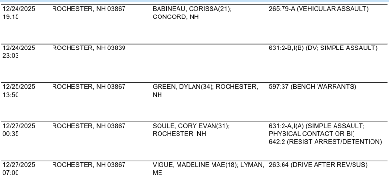 Rochester Police Arrest Log for Dec. 24-27