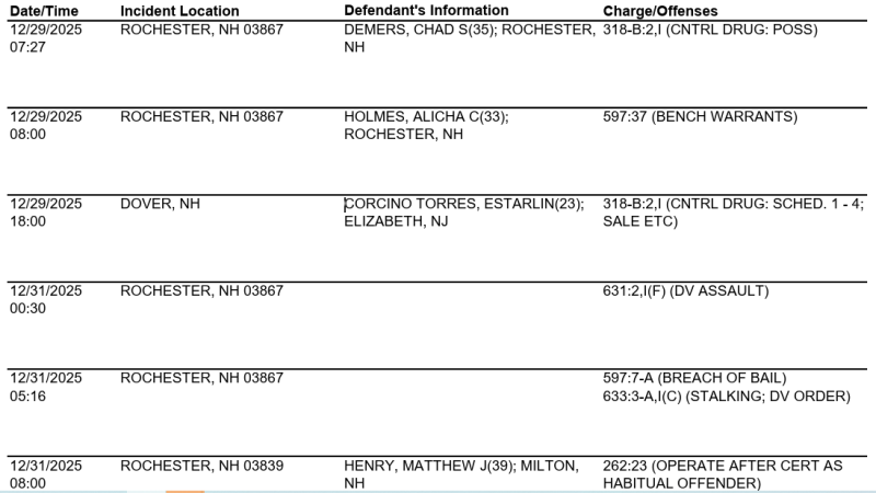 Rochester Police Arrest Log for Dec. 29-31