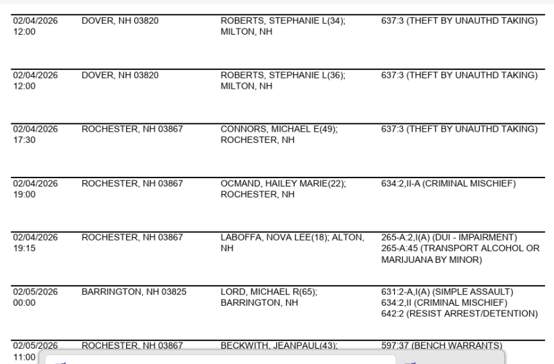 Rochester Police Arrest Log for Feb. 4-5