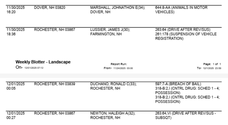 Rochester Police Arrest Log for Nov. 30-Dec.1
