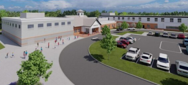 The modern facility features state-of-the-art technology, flexible learning spaces, and dedicated areas for music, art, and special education.