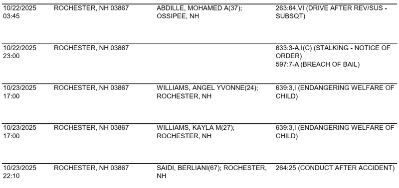 Rochester Police Arrest Log for Oct. 22-23