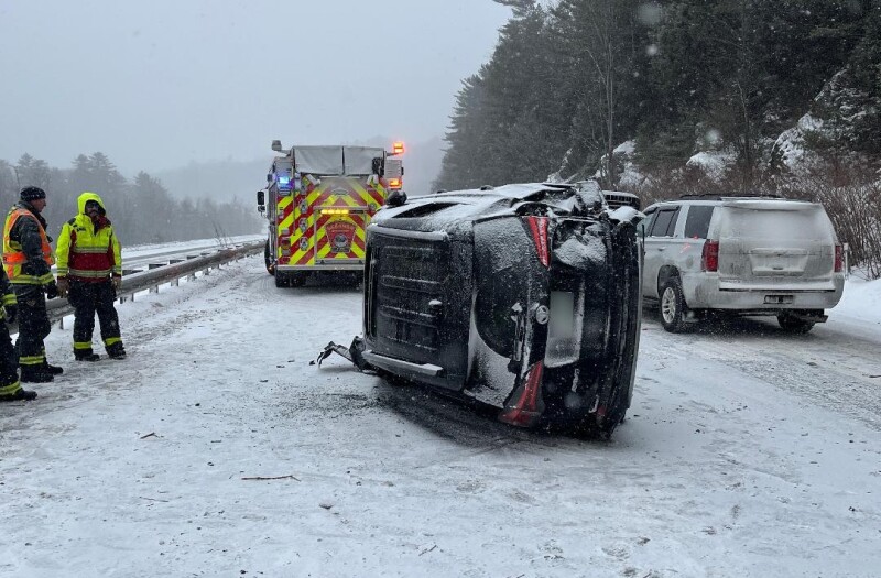 One of dozens of crashes that occurred on Granite State roadways during the two-day storm. (NHSP photo)